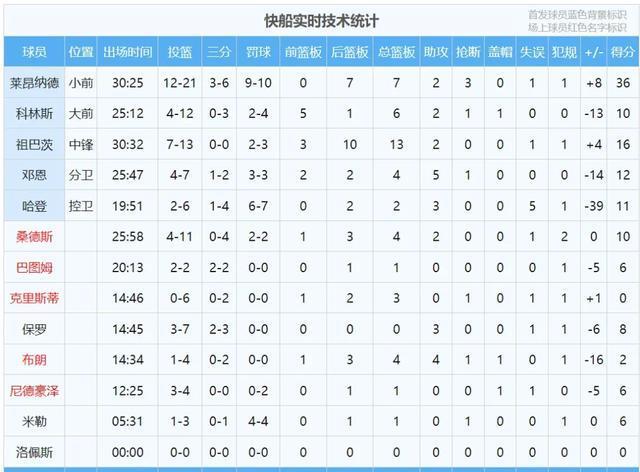 哈登半场正负值-30,生涯第二差,仅次于2015-16赛季的半场-37!第三节刚打2分钟,快船落后到30分,泰伦卢换下全部主力。热火最多领先到38分,泰伦卢害怕输得太难看,第三节最后时刻又把小卡等主力球员逐渐换上场。