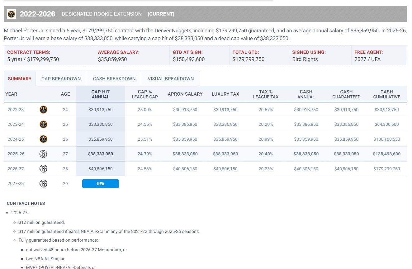 小波特五年1.79亿的合同进入第四个赛季,今年他的年薪为3833万,今夏掘金为了送走他的合同,拿出了1个首轮签从篮网换回了卡梅伦-约翰逊,结果卡约来到掘金后场均8.6分2.8篮板,他的表现怎么跟小波特比?