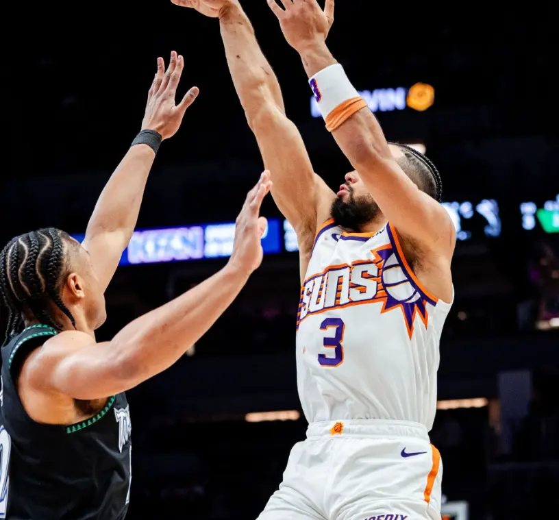 第三节比赛马威命中三分,戈贝尔罚球2中1后迪文琴佐投篮命中,狄龙罚球2中1后戈贝尔扣篮得分,狄龙投篮命中后兰德尔命中三分,吉莱斯皮补篮得分后爱德华兹连得4分,马威连得3分后爱德华兹打板得分,接下来在爱德华兹、兰德尔等人发挥下一度完成反超,可末尾阶段吉莱斯皮、狄龙追分,三节比赛结束两队打平。第四节比赛太阳打出一波7-2,里德命中三分后太阳又打出一波7-0,随后森林狼回击一波8-2,吉莱斯皮命中三分后兰德尔罚球2中2,马威扣篮得分后阿伦罚球2中1,随后爱德华兹、兰德尔突到内线得分,之后吉莱斯皮罚球2中2,最终太阳大爆冷击败森林狼。