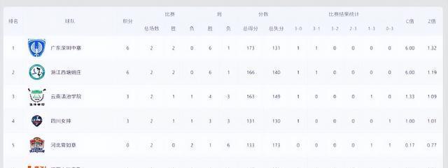 除此之外,许晓婷也有很大的进步,她的调整能力非常强,与外援的配合也已炉火纯青,许晓婷绝对是本赛季的第二重惊喜。至于老将高意,发挥虽不如陈厚羽那般完美,却也称得上可圈可点,她的身高优势完全打了出来,快攻也屡有贡献,蔡斌不愧是最熟悉高意的老帅。随着上海女排取得两连胜,最新的联赛积分排名随即更新,江苏女排从原本的第一直接跌到了第5名,战绩为1胜1负累计3分。高居榜首的上海女排,则为2胜0负6分领跑,排名第二的是同为两连胜的山东女排,她们虽然也有6分进账,但山东队小分上不如上海,所以暂时排在积分榜第二。至于刚迎来首胜的北京和福建,则分列积分榜的第三名和第四名,两队积分分别是4分和3分。