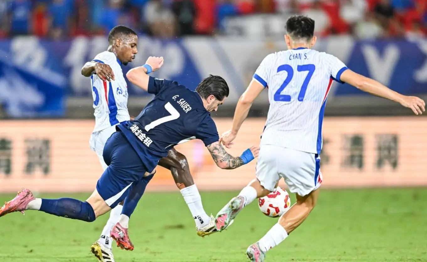 第26分钟,高天意犯规,被出示黄牌。第35分钟,陈晋一在禁区左侧扣球过人后起脚低射,门将把球扑了一下,皮球稍稍偏出右侧立柱。第37分钟,阿苏埃爆射踢偏了。第40分钟,特谢拉踩踏犯规,被出示黄牌。半场结束,比分依然是0-0!
