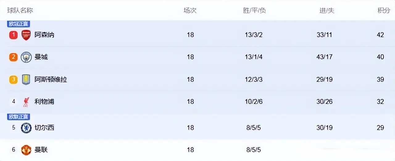 本轮全取三分的阿斯顿维拉,继续咬住前两名阿森纳、曼城,依旧处于争冠队的行列,阿森纳42分领跑,曼城40分排在第二,阿斯顿维拉39分位居第三。目前来看,英超榜首之争趋于白热化,前三名阿森纳、曼城、阿斯顿维拉,在最近三轮都是保持全胜。