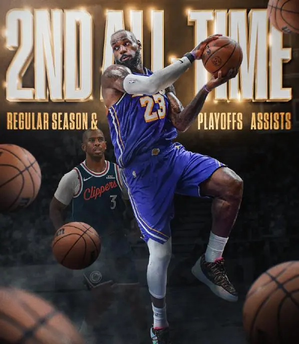 重新回到赛场之后,湖人开始发力,尤其是四旬老汉勒布朗詹姆斯,得分和组织一肩挑,四节战罢砍下了26分、7个篮板、10次助攻和1次抢断的全面个人数据,其中常规赛和季后赛总助攻次数超越保罗,独享历史第二,仅次于斯托克顿。