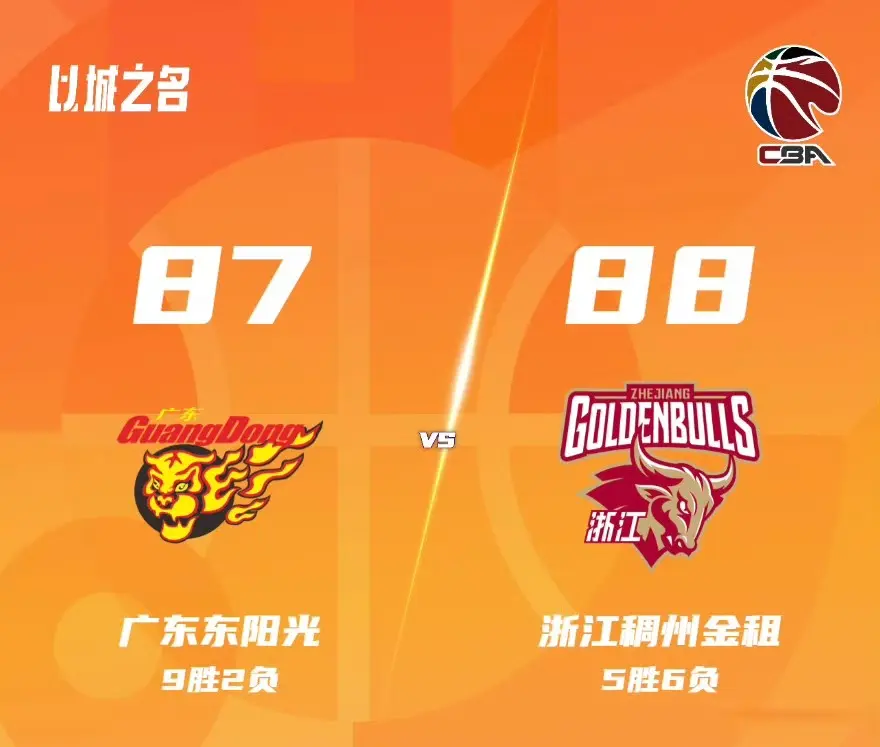 广东队在主场输了,以87-88不敌浙江队,1分惜败,确实可惜!