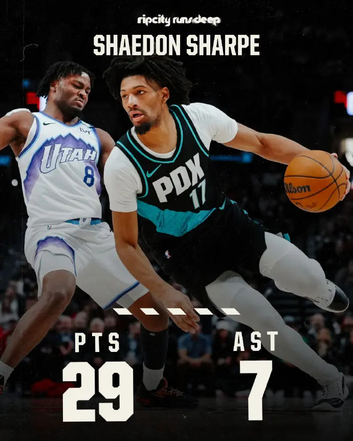 开拓者全队有7人得分上双,阿夫迪亚表现出色,仅出场29分钟,投篮19中10,三分球10中4,罚球10中9,砍下33分8篮板9助攻的豪华准三双数据,正负值+23。值得一提的是,阿夫迪亚本赛季至今已经10次单场砍下30+,而之前生涯加起来也才10次。在今天的比赛之后,阿夫迪亚的生涯总得分也突破了5000分大关。阿夫迪亚赛季场均也可以得到25.7分7.3篮板7.1助攻的全面数据,完全是全明星级别的水准。
