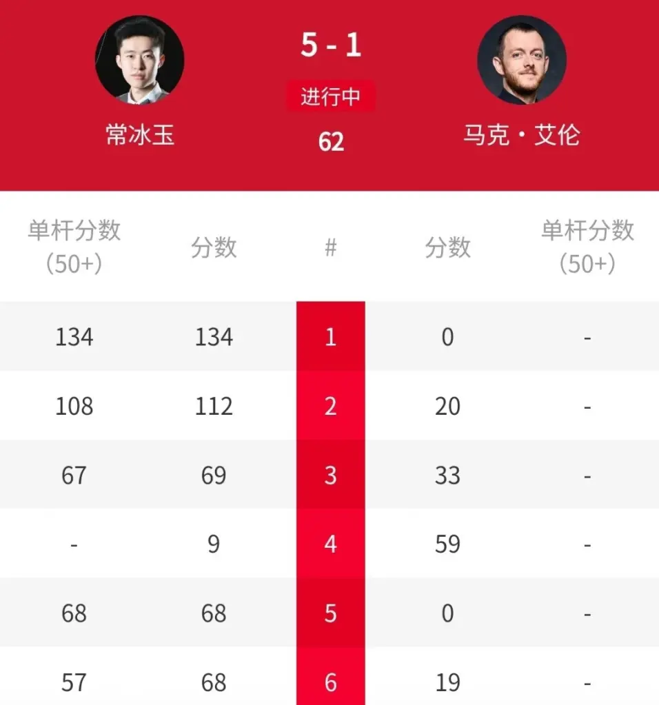 接下来的比赛中,常冰玉连续战胜斯佳辉、凯伦-威尔逊、马克-塞尔比三位高手,轻松晋级四强。半决赛,常冰玉的对手是“小钢炮”马克-艾伦。此役,他以6-1的比分轻松战胜对手晋级决赛。