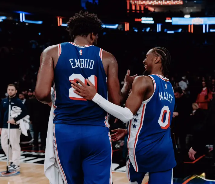 76人则是错失绝佳机会,本该是轻松到手的胜利,没想到却掉链子了。这次恩比德的状态还是不错的,22投13中,三分4中1,罚球5中5,拿到32分10篮板2助攻,可就算是这样依然无法赢球,最后也是绝望离场。马克西这边拿到28分6篮板6助攻,乔治10中3只拿到8分。