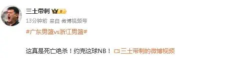 篮球记者“贾磊”发文点评:“神奇的绝杀!浙江队在客场加时赛击败广东!约克最后时刻用一记神奇的三分球帮浙江赢下了这场胜利”