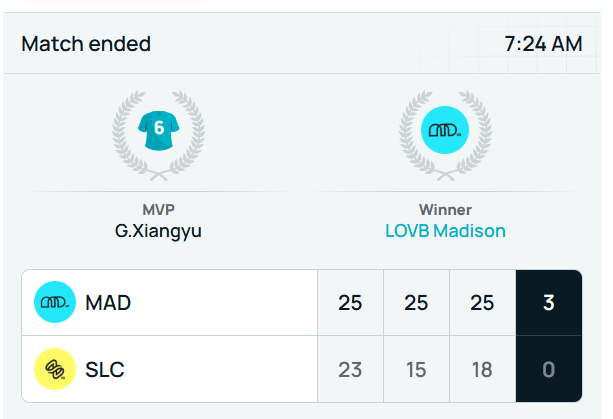 尽管盐湖城队在客场未能取胜,但她们也展现出一定的韧性与实力。副攻瑟琳娜·格雷拿下7分,罗尼·琼斯-佩里同样砍下7分,整场比赛,盐湖城在拦网环节与麦迪逊不相上下,但进攻端效率稍显不足,失误率偏高,最终未能阻挡麦迪逊的强势表现。