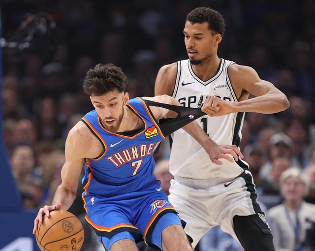 这是本赛季雷霆与马刺的第四次交手,前三次都是马刺取得胜利,联盟第一的雷霆极度想要挽尊完成复仇,开场两队拼防守就非常凶猛,文班亚马完成了隔扣霍姆格伦的大戏。SGA被贴防影响,好在卡森与威金斯分别命中三分。卡斯尔连拿五分回应,科内特两个前场篮板马刺都得分,米切尔突破得手,亚历山大造2+1马刺立马暂停,亚历山大再度命中反超,首节打完雷霆32-26领先马刺。