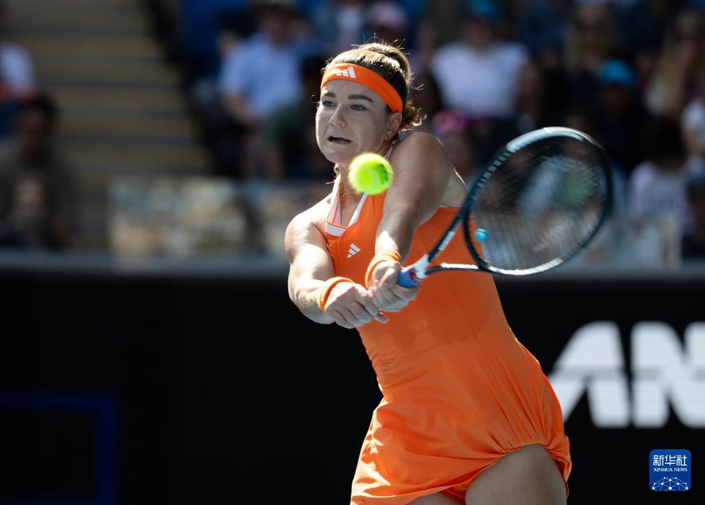 1月25日,穆霍娃在比赛中回球。