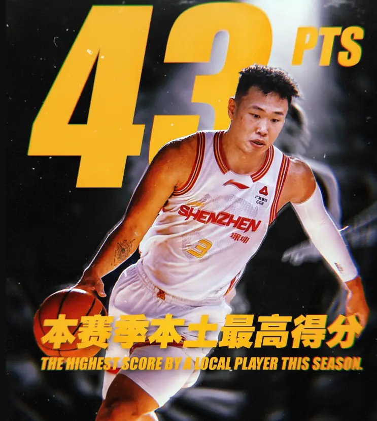 其中,43分为本赛季本土球员的得分新高。