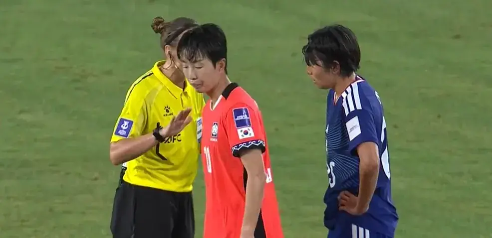 比赛开场仅15分钟,韩国队就在自家禁区内玩火自焚!后卫带球被断下,日本队就地组织进攻,植木理子劲射破门,韩国队开局0-1落后。