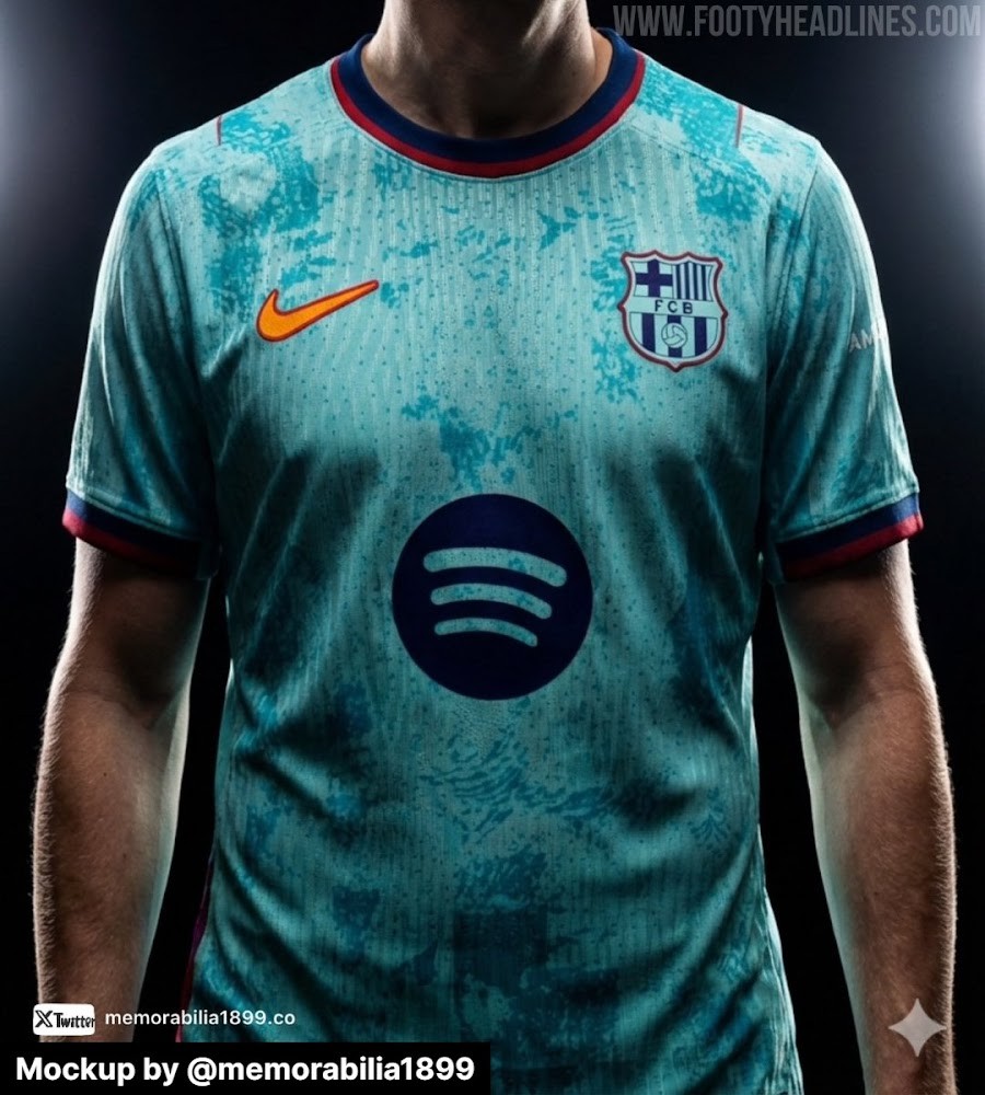 3月31日,知名足球装备网站Footy Headlines泄露了巴萨下赛季的三套球衣,主场依旧为经典红蓝配色,客场紫金致敬湖人,第三球衣将重新启用薄荷绿,此前该颜色已缺席数个赛季。