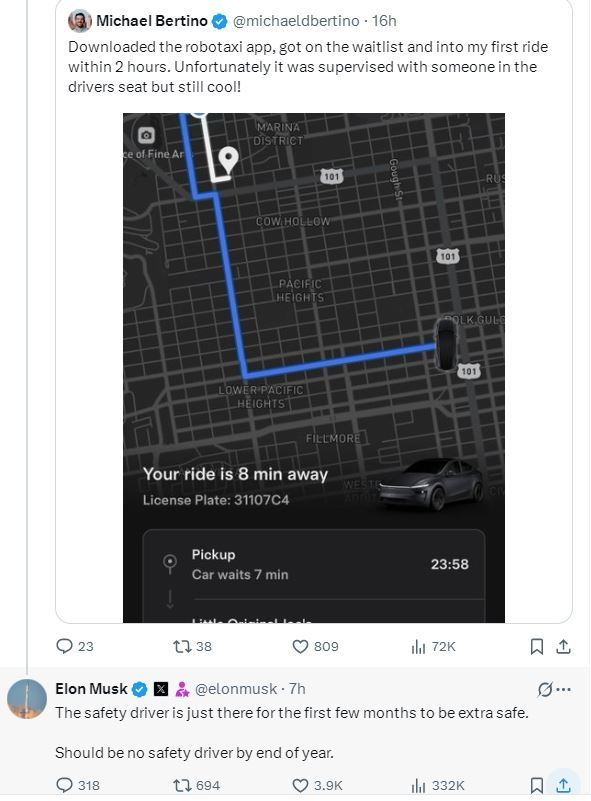 首批体验者中,一位X平台用户分享了试乘细节。他通过Robotaxi应用完成注册并进入等候名单后,仅用两小时便成功约到车辆。虽然发现驾驶座仍有人员值守,但该用户对整体体验给予积极评价。特斯拉安全团队重申,当前阶段的安全监控员主要承担应急干预职责,其存在不会影响自动驾驶系统的核心运行逻辑。