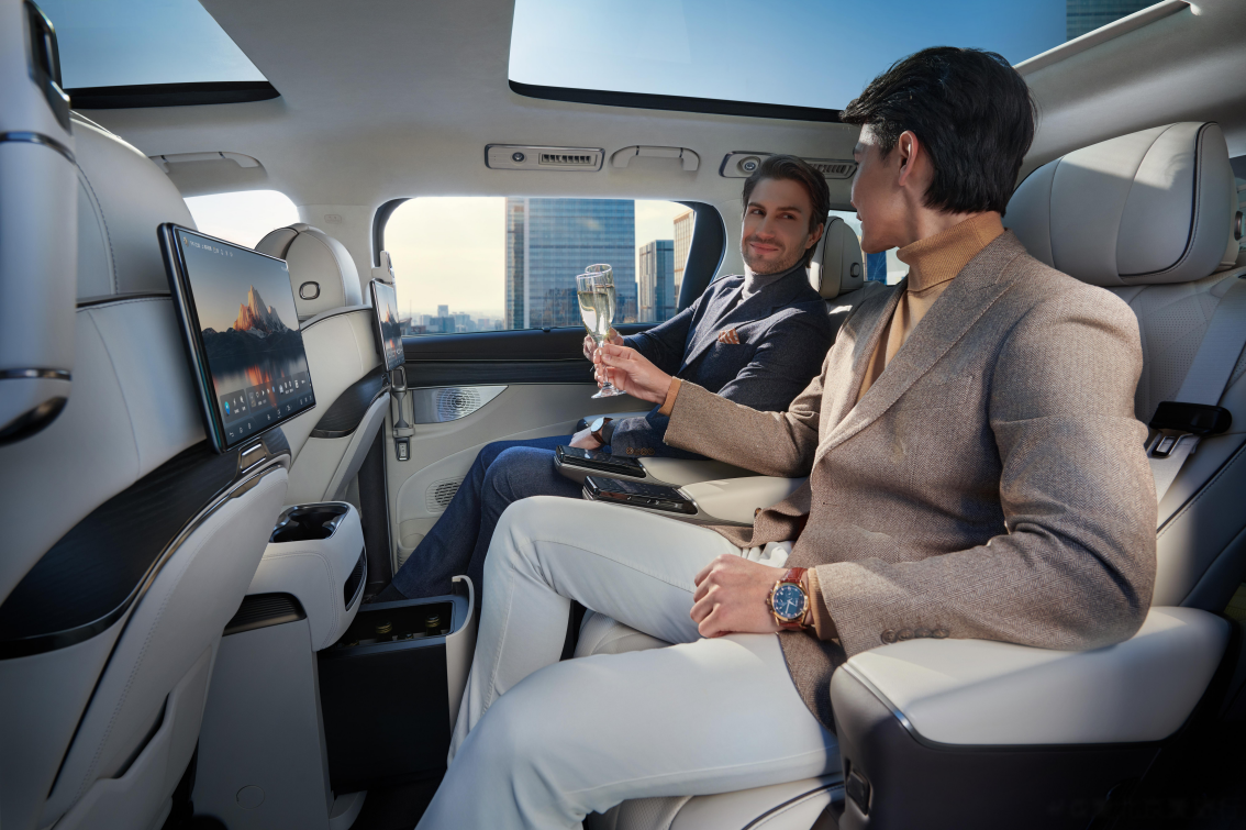 至于语音操作显然不是万能的,在嘈杂的环境中可能无法识别,在车内有其他人正在畅聊的时候也不适合使用;比如下图中的商务场景,司机忽然来上一句“你好、莫某,空调温度调低一度!”此时司机不尴尬,后排的人也会尴尬。