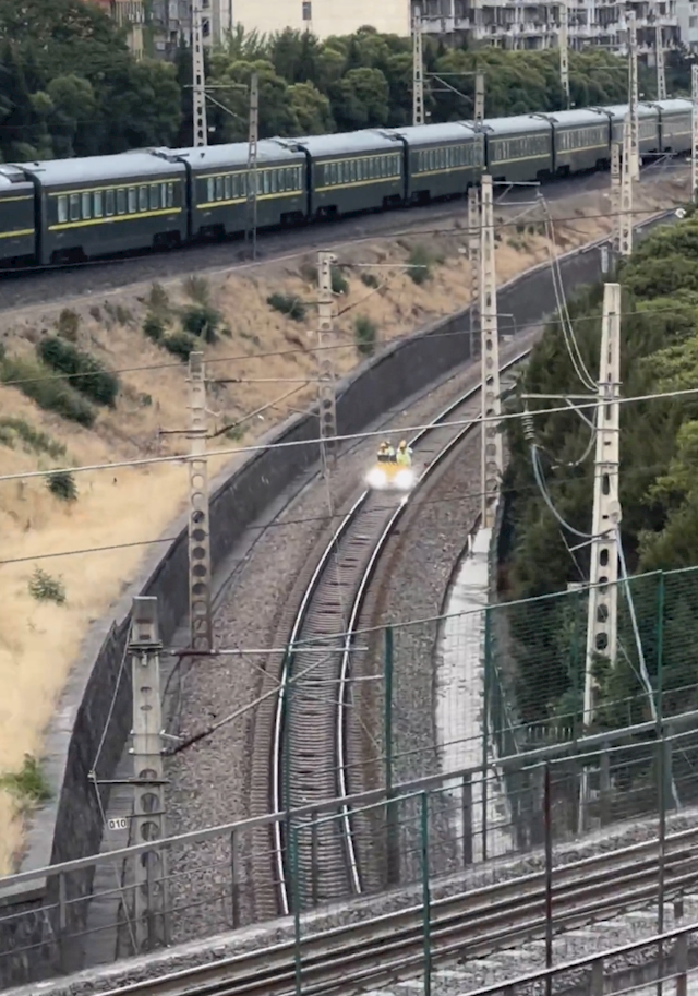 需要在车站工作人员统一指挥下,行驶在封闭检修的线路区间内,因此不需要担心“跑不赢火车”。