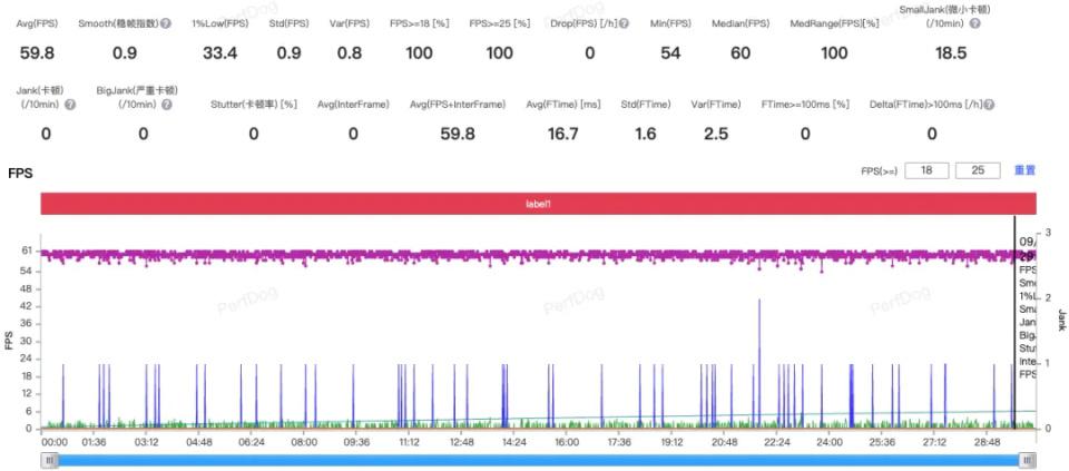 第五代骁龙 8 至尊版帧率不出意外的很稳定,平均达到 59.8 帧。