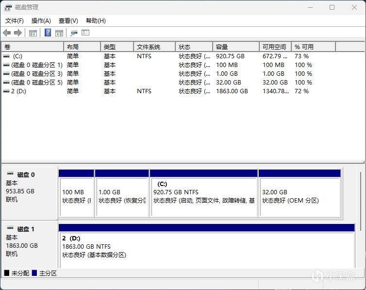 分区,删除卷,新加卷,格式化都可以在这里进行