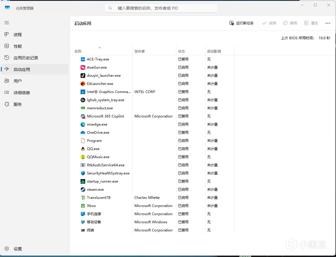 依旧打开任务管理器,点启动应用,把没用的都关了