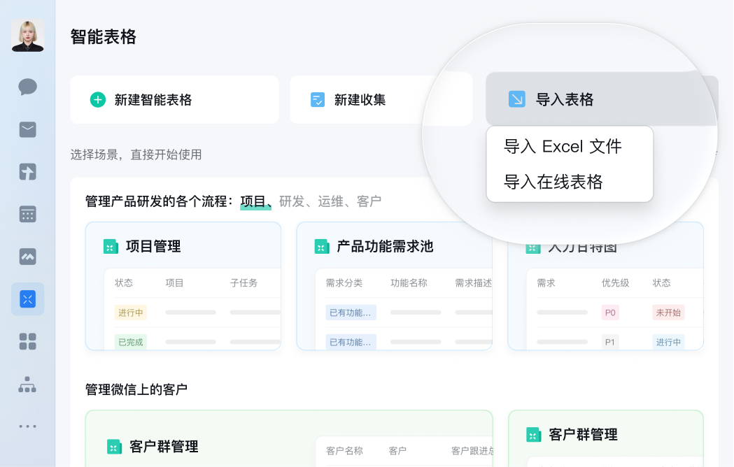 - 支持一键导入已有的 Excel 表格,一张表搭建企业业务管理系统。