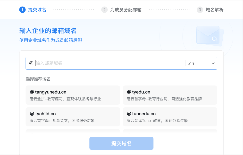 支持一站式完成选域名及免费开通邮箱的流程,无需跨平台操作。