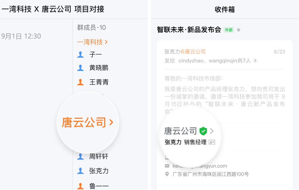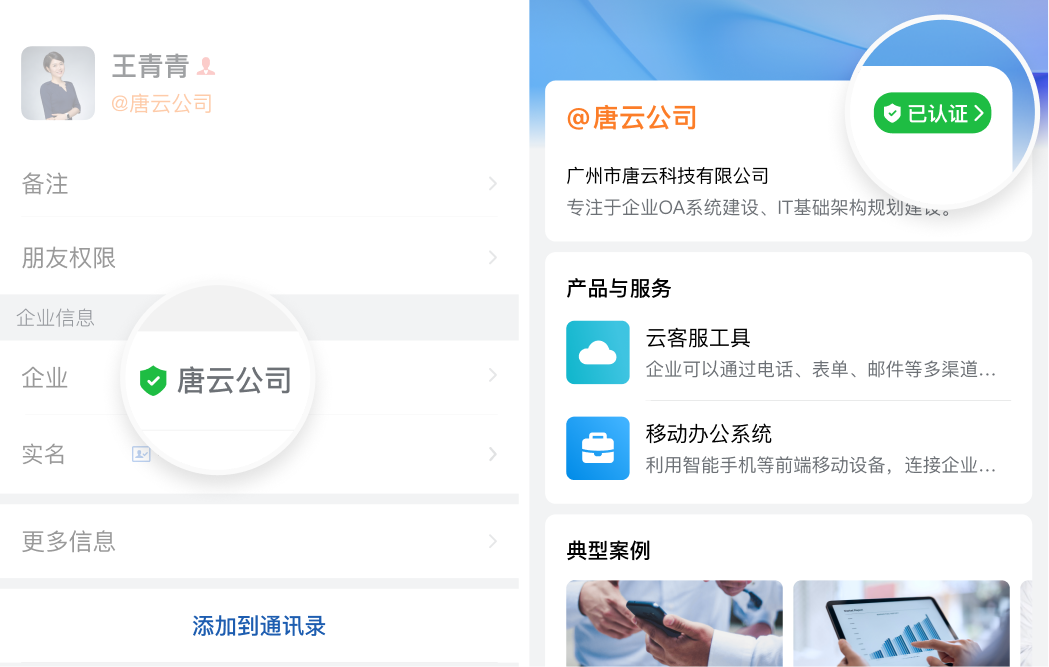 - 可在与客户的单聊、客户群、邮件、文档、会议等多场景展示,更正式地对外介绍企业。