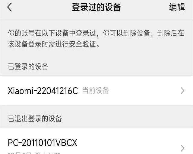 打开微信,按我→设置→账号与安全→登录设备管理,右上角编辑,见到陌生名字就左滑删除,删完系统会让你重新输密码
