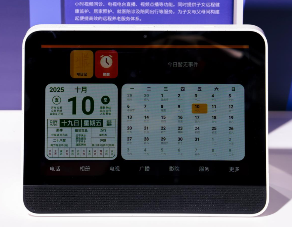 吸引很多参展者现场体验的小蓝船居家养老智慧中屏,是一款由中国移动终端公司推出的智慧养老产品,同样也是由骁龙移动平台驱动,通过 10 寸智慧中屏,集成适老化交互系统、24 小时视频问诊、电视电台直播、视频点播等功能。同时提供子女远程健康监护、居家照护、就医陪诊及陪同出行等服务,为子女与父母间构建起便捷高效的远程养老服务体系。