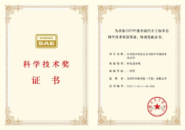 快科技10月22日消息,据媒体报道,近日,吉利汽车“车用动力电池安全与防护关键技术及应用”项目,荣获2025年度“中国汽车工程学会科学技术奖”科技进步奖一等奖。