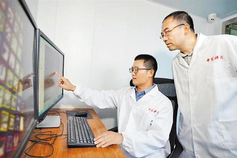 团队专家讨论冷冻电镜数据采集。 (中国科大供图)