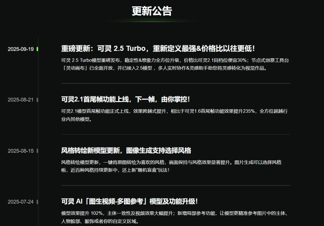 视频质量飞跃的同时,可灵2.5也大幅降价,5秒视频的生成价格从35灵感值(1元可充值10灵感值)降至25灵感值,比2.1同档位便宜近30%。