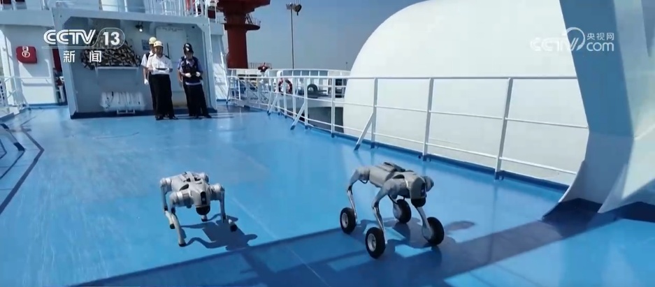 而在江苏扬州,边检站联合海关,首次集中使用“机器狗+无人机”,对丹麦籍化工品船舶“特恩兰德”轮开展全方位检查,仅用30分钟就完成了传统模式下需50分钟的查验工作,效率提升超40%。