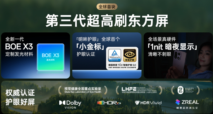 据CNMO了解,一加15搭载一块6.78英寸的1.5K分辨率LTPO AMOLED直屏。该屏幕由一加与京东方联合研发,支持165Hz超高刷新率,采用LIE四等边设计,边框宽度仅为1.15mm,实现近乎四边等宽的视觉效果,在显示精度、亮度均匀性及护眼性能方面均达到行业领先水平。