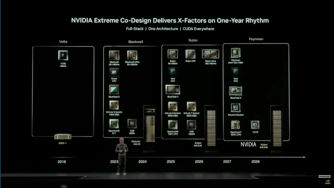 如此雄心勃勃的财务目标,底气来自于英伟达对于 AI 基础设施的年度更新战略,以每年一代的速度推出计算平台,以应对业界对更大规模、更高性能 AI 模型训练和推理的需求。