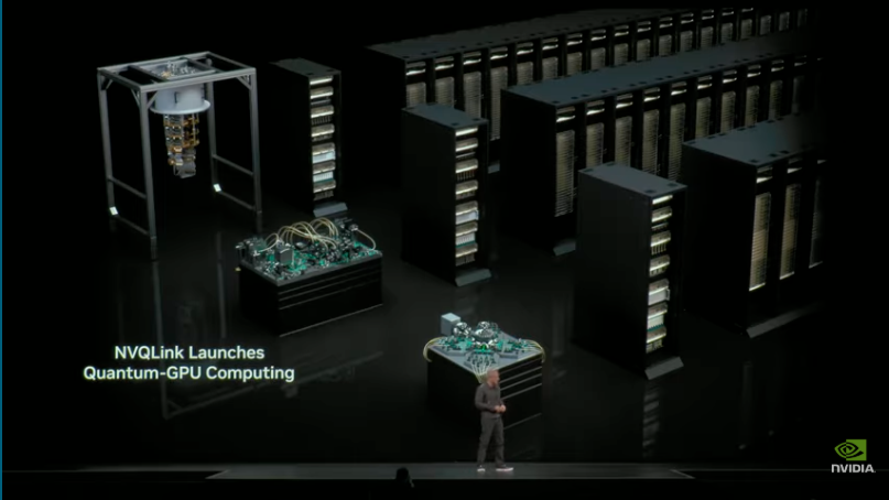 在此宏大计算战略下,英伟达同时公布了两项重量级合作。首先是推出了 NVQ Link 互联架构,专为量子处理器(QPU)与英伟达 GPU 超级计算机之间的高速混合模拟而设计,实现了微秒级的计算延迟。