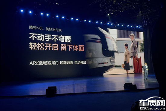 尾部造型圆润且饱满,两侧尾灯组造型与腾势Z9非常相似,扁平且狭长,有效拉宽了车尾宽度,看上去更稳重。值得一提的是,新车可通过脚踩地面上的AR投影实现后备厢感应开启。