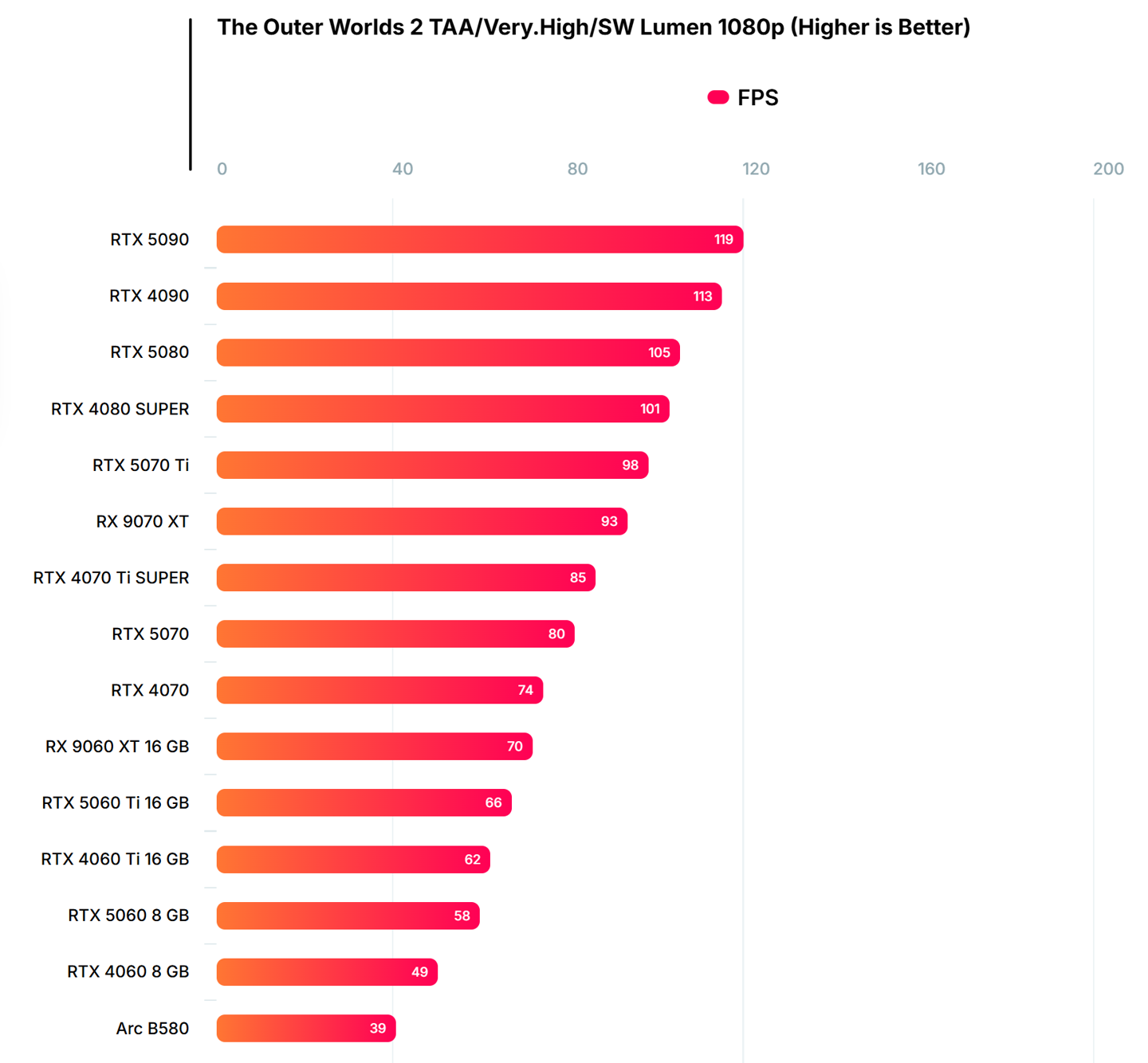该媒体将分辨率降至 1440p 后,RTX 4070 或 RX 9060 XT 级别以上的显卡可实现 60 FPS。而在主流的 1080p 分辨率下,大部分高于 RTX 5060 或 Arc B580 的显卡可以满足 60 帧运行,但入门级显卡仍需借助超分辨率技术或降低画质。