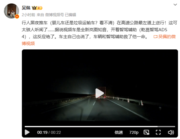 【CNMO科技消息】近日,一段发生在高速公路上的惊险视频在网络上引发了广泛关注与热议。视频中,一辆全新岚图知音汽车在正常行驶时,突遇一名行人疑似推着婴儿车在最左侧车道逆行。就在千钧一发之际,车辆的辅助驾驶功能迅速检测到前方障碍物,并立即触发紧急避障机制,成功避免了碰撞事故的发生。