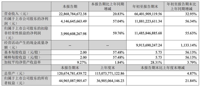 具体到第三季度,报告期内,阳光电源实现营收228.69亿元,同比增长20.83%,营收增速有所放缓;净利润为41.47亿,同比增长57.04%,其净利润创出了单季度历史新高;扣非净利润为39.91亿,同比增长59.76%。