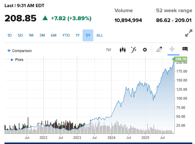 黄仁勋10月28日在华盛顿的一场发布会上表示,Blackwell以及更新一代的Rubin芯片正推动公司进入前所未有的销售增长周期,黄仁勋还反驳了有关人工智能市场出现泡沫的担忧,称公司最新一代芯片有望在未来几个季度创造高达5000亿美元的收入。华尔街金融巨头高盛的最新研报指出,5000亿美元的规模显著高于华尔街预期。该行分析团队指出,这一目标比市场通过Visible Alpha Consensus Data反映的4470亿美元共识高出12%,同时也比高盛预测的4530亿美元高出10%。