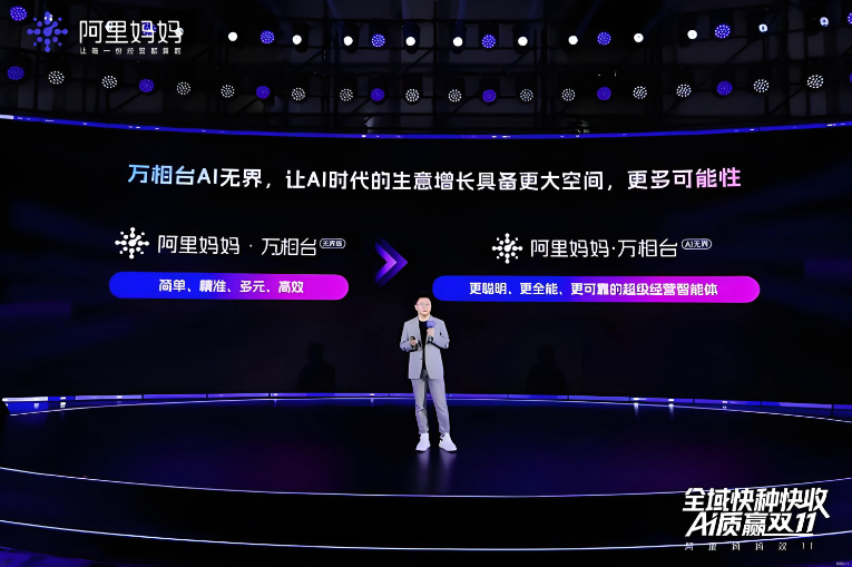 今年双11,阿里妈妈推出的“万相台AI无界”以超级经营智能体的全新形态亮相,成为品牌经营的关键增长引擎。数据显示,在双11现货开售当日,“货品全站推”助力超20万商家成交增长20%,百万商品成交增长超30%,超20万商品成交翻5倍。