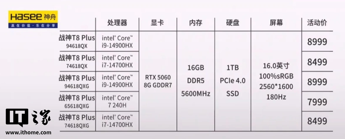 7999 元起神舟战神 T8 Plus 笔记本发布:RTX 5060、180Hz 屏