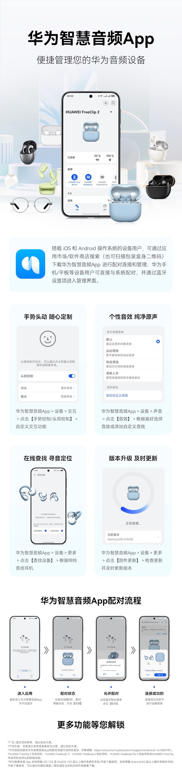 该App目前兼容华为FreeClip 2、FreeBuds 7i、FreeBuds 6等多款音频设备。