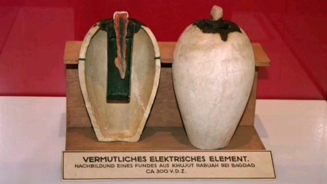 是一个类似花瓶的陶器,瓶里装满了沥青。沥青中有一个铜管,顶部有一层沥青绝缘体。里面还有一个铁棒,铁棒上面有明显被酸性液体腐蚀过的痕迹,之后考古学家对这些奇怪的文物进行了研究,经过鉴定专家认为,这个异常奇特的文物是2000多年前古人使用过的电池,他说:这些出土的铜管、铁棒和陶器是古代使用的电池。只要向陶瓶内倒入一些酸或碱性水,便可以发出电来。由于这种2000年前的电池是在巴格达近郊地下石棺内发现的,所以,人们把它称为巴格达古电池。如果说2000多年前的人类能够制造出电池,那么当时的科技会有多么发达呢?