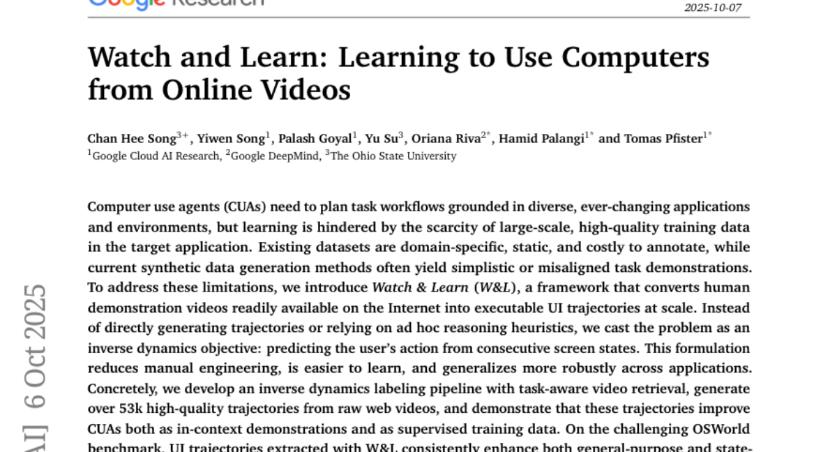 现代生活中,我们每天都在使用各种电脑软件——从简单的浏览器到复杂的图像编辑工具。每当学习新软件时,很多人的第一反应就是去YouTube上搜索教程视频。那么,如果让AI也能像人类一样通过观看这些教程视频来学习使用电脑,会是什么样的场景呢?谷歌的研究团队就实现了这个看似科幻的想法。