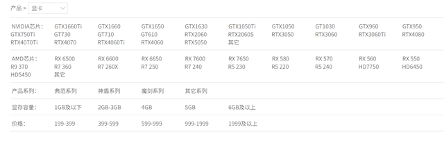 AMD显卡也没有最新的RX 9000系列,上代最高也只做到RX 7600。