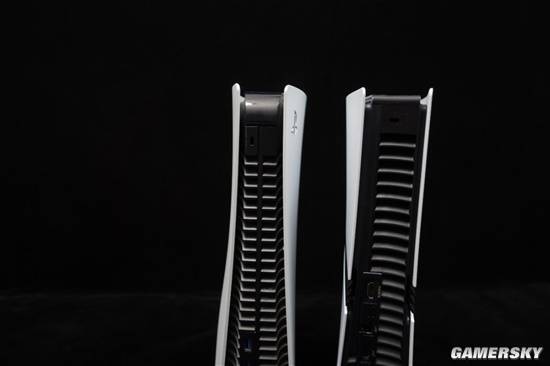 如果单纯看PS5 Pro国行版,依然是个“大家伙”,但如果你是初代PS5用户,把这俩伙计放在一起,你就能看出它究竟轻薄在哪。PS5 Pro国行版的高度略高于老版,宽度与轻薄版,也就是那个CFI-2000型的PS5机器一致,属于是尽力压缩之后的样子。