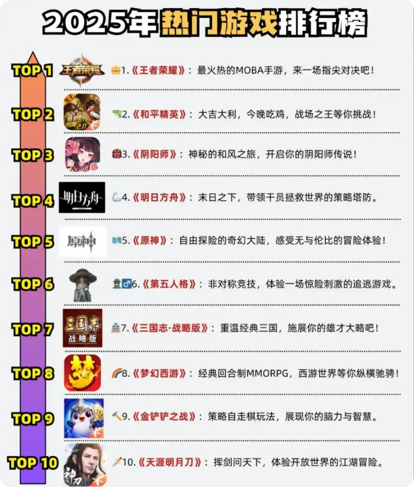 相比腾讯和网易,字节在游戏领域的影响力仍面临挑战,腾讯除《王者荣耀》《和平精英》等可以“养老”的游戏之外还有《英雄联盟手游》《金铲铲之战》等众多明星游戏产品。网易除了《蛋仔派对》之外还有《阴阳师》《第五人格》《逆水寒》,就连后起之秀的米哈游也凭借《崩坏》《原神》和《崩坏:星穹铁道》稳稳占据国内游戏赛道前三的位置。在2025年游戏排行榜前十中依然腾讯为大头,字节的游戏未能上榜。