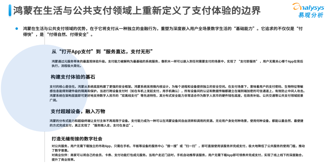 易观报告显示,鸿蒙已经成为应用生态的第三极,其正适配于社交通讯、金融支付、音频娱乐、新闻信息、应用管理、体育文化、医疗健康、母婴儿童、电商购物、旅游出行等十大潜力赛道。